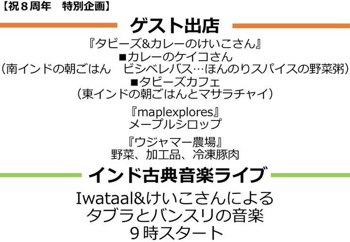 明日は、8周年を記念して特別ゲスト出店者さんも登場し、イベント盛り沢山の楽しい市場になるそうですよ!