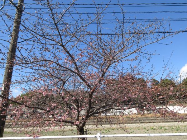 穏やかな晴れ間が広がる中、河津桜も順調に開花しております。