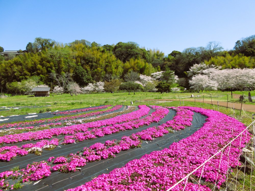 石仏公園には芝桜もきれいに咲き、桜の2重奏です。