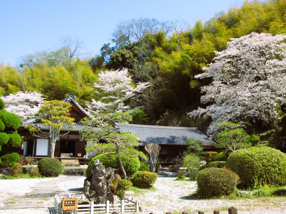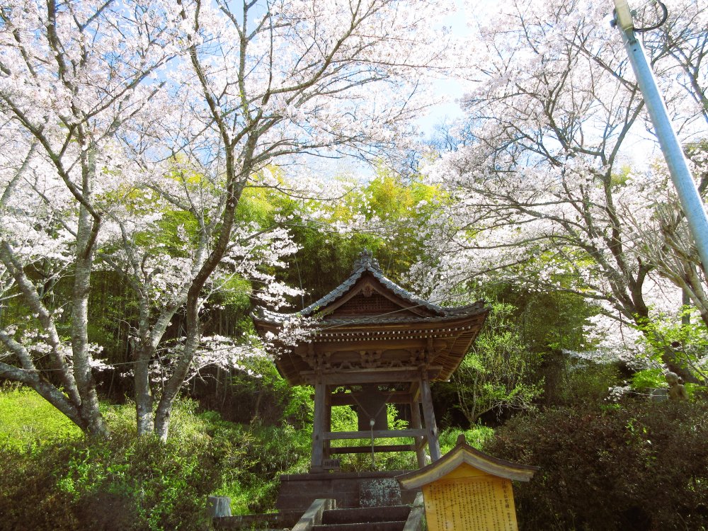 満月寺の周辺も見事です。桜に縁どられた境内に淡いピンクに覆われた鐘付堂、穏やかな4月の陽射しの中で観て歩くと、心が和んでくるものです。